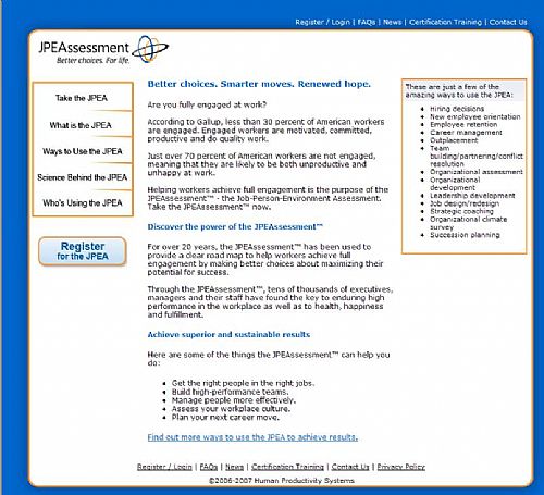 A Job-Person-Enviroment Assessment tool that provides the information on which individuals can base their choices about managing their energy at work. 2014/Spring