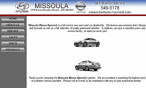 Missoula Nissan and Hyundai is a new and used car dealership dealing with the full line of Nissan and Hyundai automobiles. 2003/Spring
