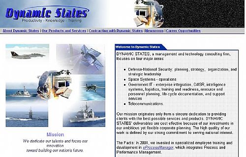 Dynamic States is a management and technology consulting firm whose clientelle includes the US Army, Air Force, Navy, Marine Corps, Joint Commands, defense agencies, and national security and intelligence agencies.