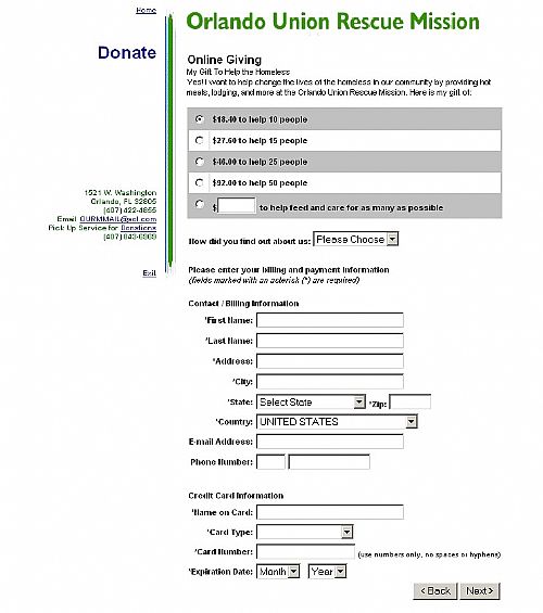 An online application that lets users donate instantly through credit card. 1999/Spring